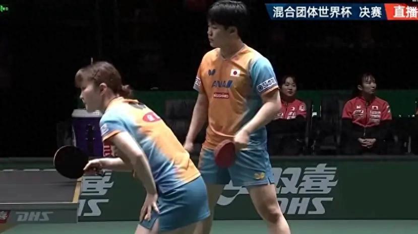 决赛中,最初进行的是搀杂双打的对决,中国队派出王楚钦/孙颖莎组合出战,日本队派出松岛辉空/大藤沙月组合迎战。