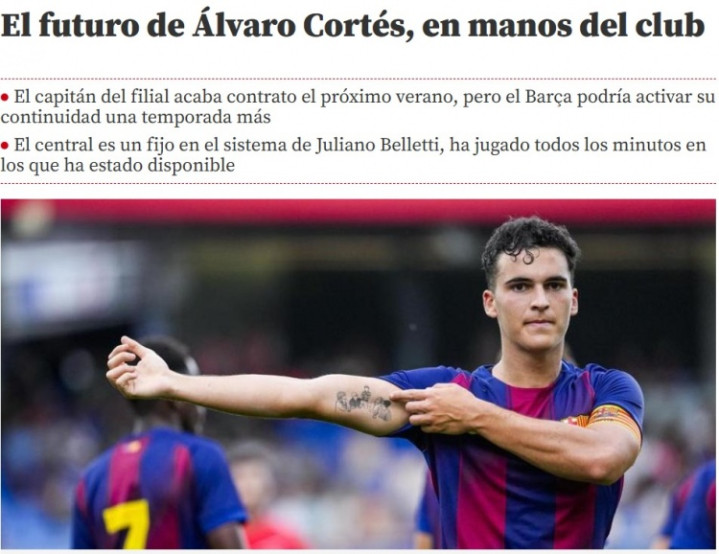 直播吧11月7日讯《寰宇体育报》报谈,巴黎圣日耳曼专诚巴萨B队队长阿尔瓦罗-科尔特斯,他的协议将在来岁到期。