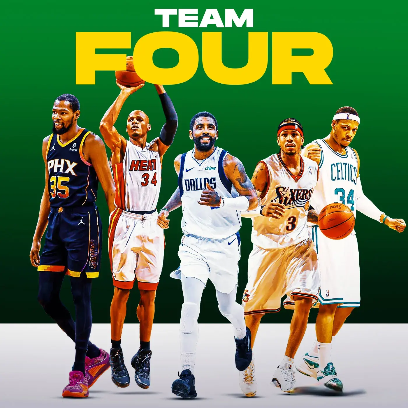 这五东说念主组是由艾弗森、欧文、雷阿伦、皮尔斯、杜兰特构成的,三名后卫加两名锋线,齐是中远投和冲破一流的球员,问题在于他们的内线,简直很薄弱。