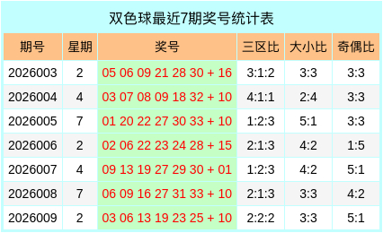 红球三区比为2:2:2,奇偶比为5:1,大小比3:3。